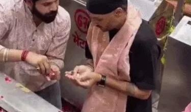 IPL के बीच खाटूश्यामजी पहुंचे क्रिकेटर हरभजन सिंह:चौखट पर मत्था टेककर स्वास्तिक बनाया, 1 महीने में दूसरी बार आए